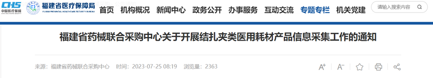 (福建省藥械聯合采購中心關于開展結扎夾類醫用耗材產品信息采集工作的通知)