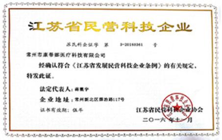 獲得江蘇省民營科技企業稱號
